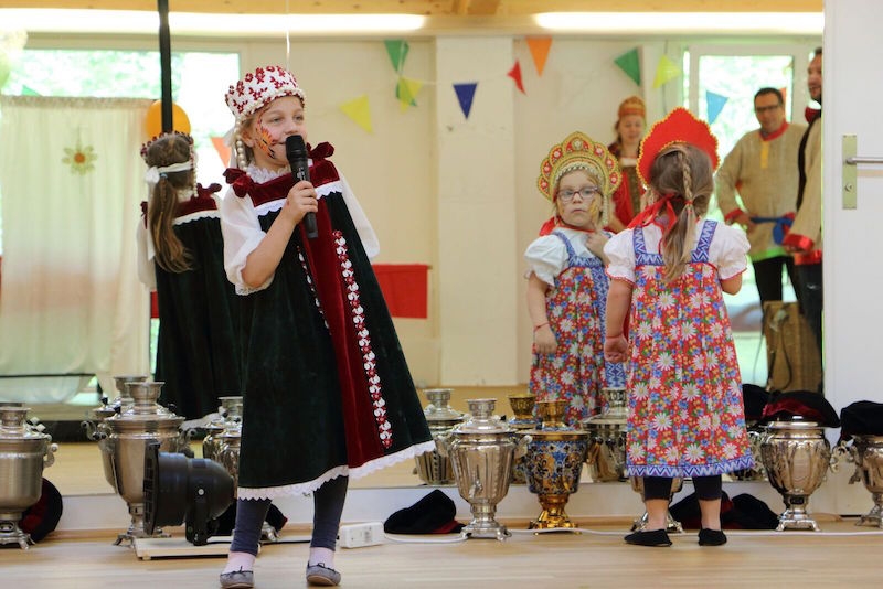 Праздник начался на лесной поляне. Дети написали на лепестках большой ромашки свои имена, а кто не умел – обвел ладошку. На долгую добрую память. И зазвучали малиновые колокольные перезвоны и танцевальные ритмы, и взлетели в небо пятнадцать белых голубей мира, а за ними – множество разноцветных шариков – в синюю ввысь. Так 16 мая в швейцарском городке Цолликерберг близ Цюриха открылась настоящая русская ярмарка.