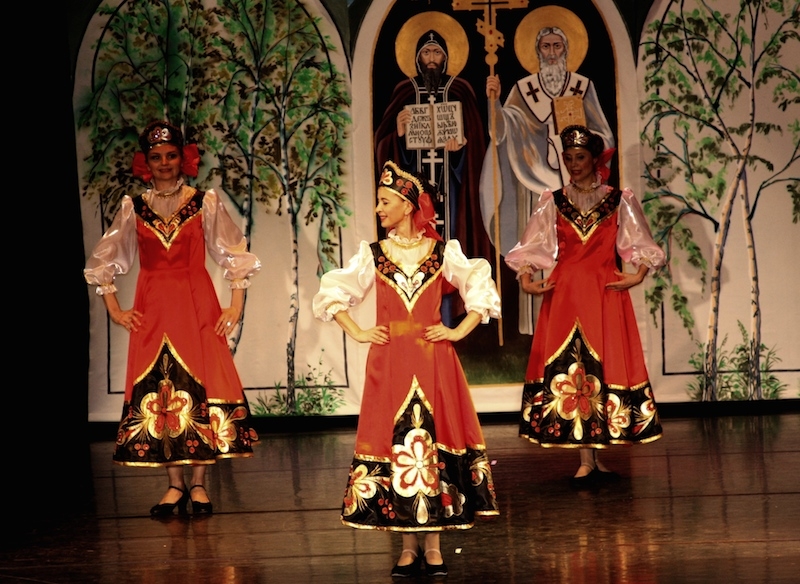 Наташа Доронина спела песню о Белоруссии, а Соня Никольская – «Мы вместе». Сменяли друг друга веселые номера. Искрились болгарские пляски от «Школы отца Паисии». Танцоры из Биля (балетмейстер Людмила Скрыпник) порадовали украинским гопаком.