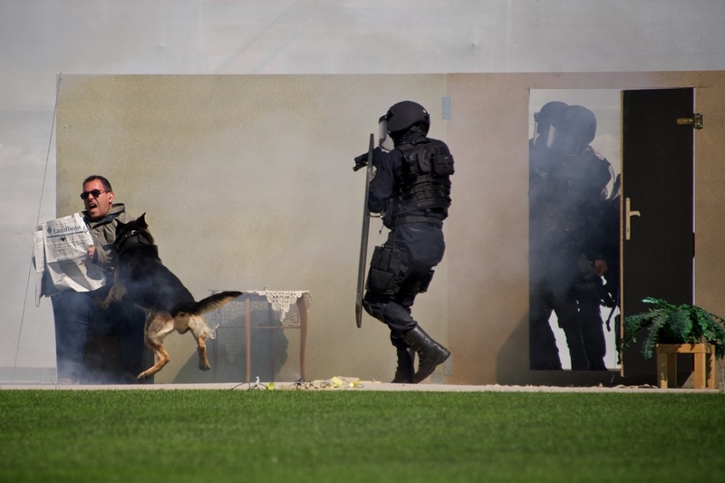 Как рассказали кинологи, пес работает исключительно из любви к наставнику. В этом залог полного взаимопонимания. Служба не в том, что зверь догоняет и хватает убегающего. Здесь помогают инстинкты. А догнать, схватить и потом отпустить по команде (!), вот где ведущая роль инструктора. Питомцы обучены так, что без приказа не будут предпринимать никаких действий. А устойчивая психика позволяет им не бояться звука выстрела.