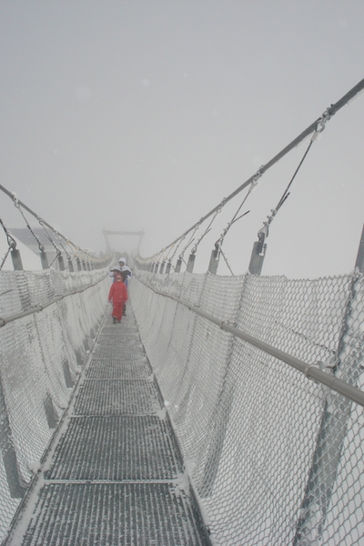 Совсем недавно – в декабре 2012 года на Титлис, на высоте в 3041 метра, открыли самый высокий в Европе 100-метровый подвесной мост (Titlis Cliff Walk). Его строительство обошлось 1,5 млн. CHF. Чудо техники должно выдерживать скорость ветра 200 км/ч и 40-градусный мороз. Теперь отважные могут заглядывать в 500-метровую пропасть. Один конец моста выходит к станции канатной линии Ice-Flyer, к другому можно добраться по прорубленному в леднике 140-метровому проходу с южной стороны горы.