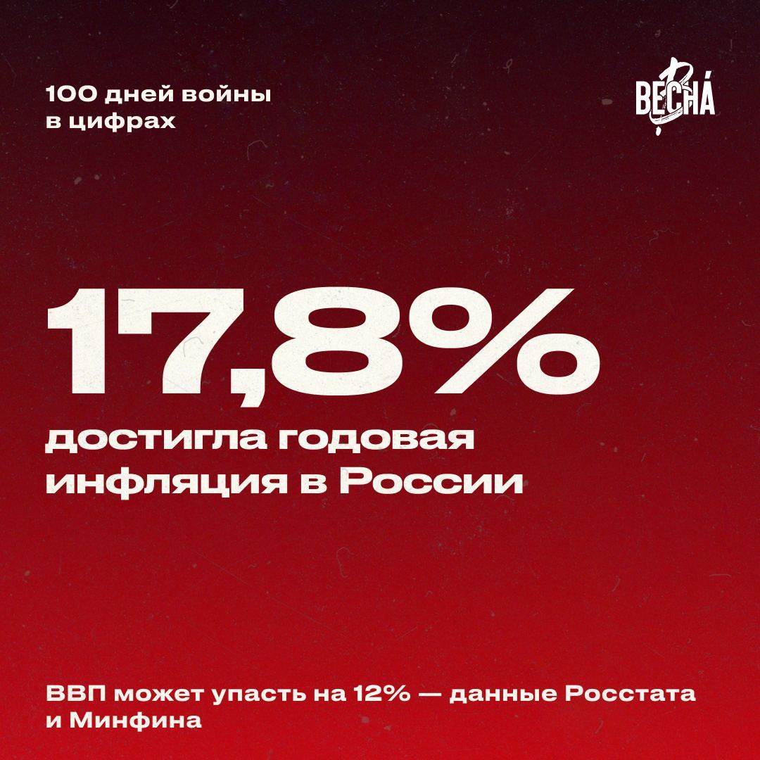 Война стоит России примерно 24 миллиарда рублей в день, а инфляция достигла 17,8%, прогноз падения ВВП составляет 12%. Эти и другие цифры — в картинках.