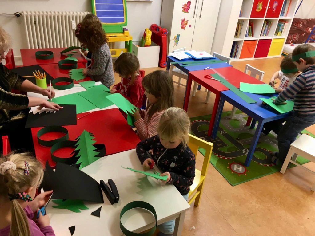 За окном декабрьский Цюрих наряжался в первый снег, а игровая группа «Радуга» — в новогоднее настроение: «Дорогой Дед Мороз, я хочу…» и имя, чтобы Мороз знал, кому подарок. Стелла, Филипп, Ваня, Саша, Сима, Авива – все старались, письма получились чудесные. Украсили открытки блестящими звездочками. А преподаватель изобразительного творчества Евгения Первушина подсказала, как нарисовать красивую ёлочку. Аппликация, лепка из пластилина, оригами, рисование развивают мелкую моторику.