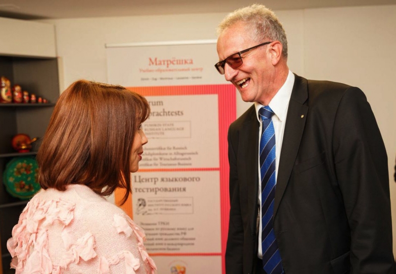 В швейцарском городе Цуг (нем. Zug) открыт новый центр тестирования русского языка. Красивую красную ленточку торжественно разрезала ректор Государственного института русского языка им. А.С. Пушкина Маргарита Русецкая. А затем, выражая поддержку начинанию, передала половинку символической ленты руководителю Учебно-образовательного центра «Матрёшка» Ольге Александрэ.