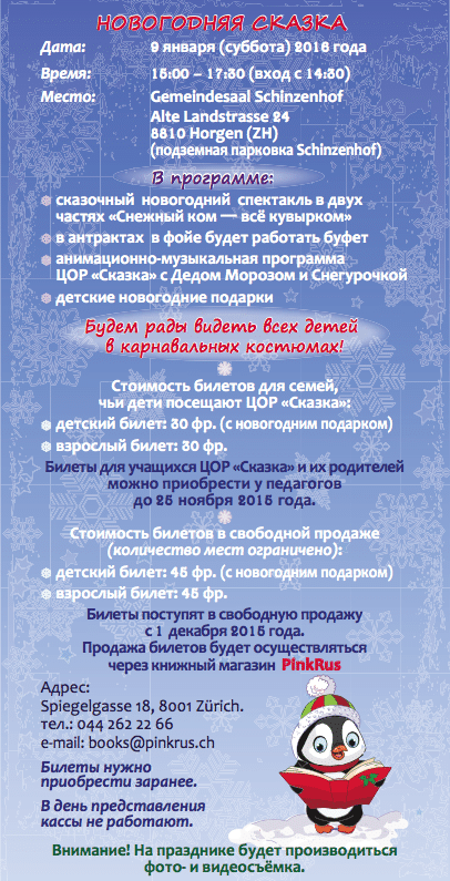 · детский билет: 45 франков (с новогодним подарком)