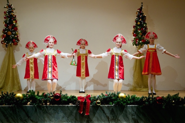 Ученики класса вокального пения УОЦ «Матрёшка», торжественно исполнили рождественскую песню. Далее концерт был продолжен святочными гуляниями от мала до велика! Детский ансамбль «Матрёшка» выступил с танцами «Балалайка» и «Сапожки Русские». А танцевальная группа родителей и преподавателей представили хореографический номер «Танец с шалями».