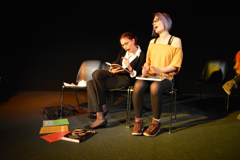 Введение нового пространства и персонажей (разочаровавшийся, дилер, служащие) не нарушает целостность источника. Мне понравились костюмы и активный темп действа, подчеркнутый музыкой. Мизансцена с алыми розами на фоне черных минималистских декораций добавила контраста в символизм сказки для взрослых, придуманной автором, когда человечество горело в огне Второй мировой войны.